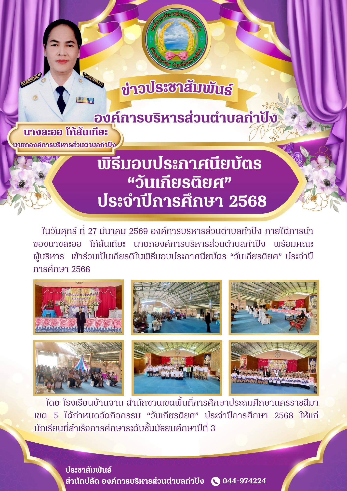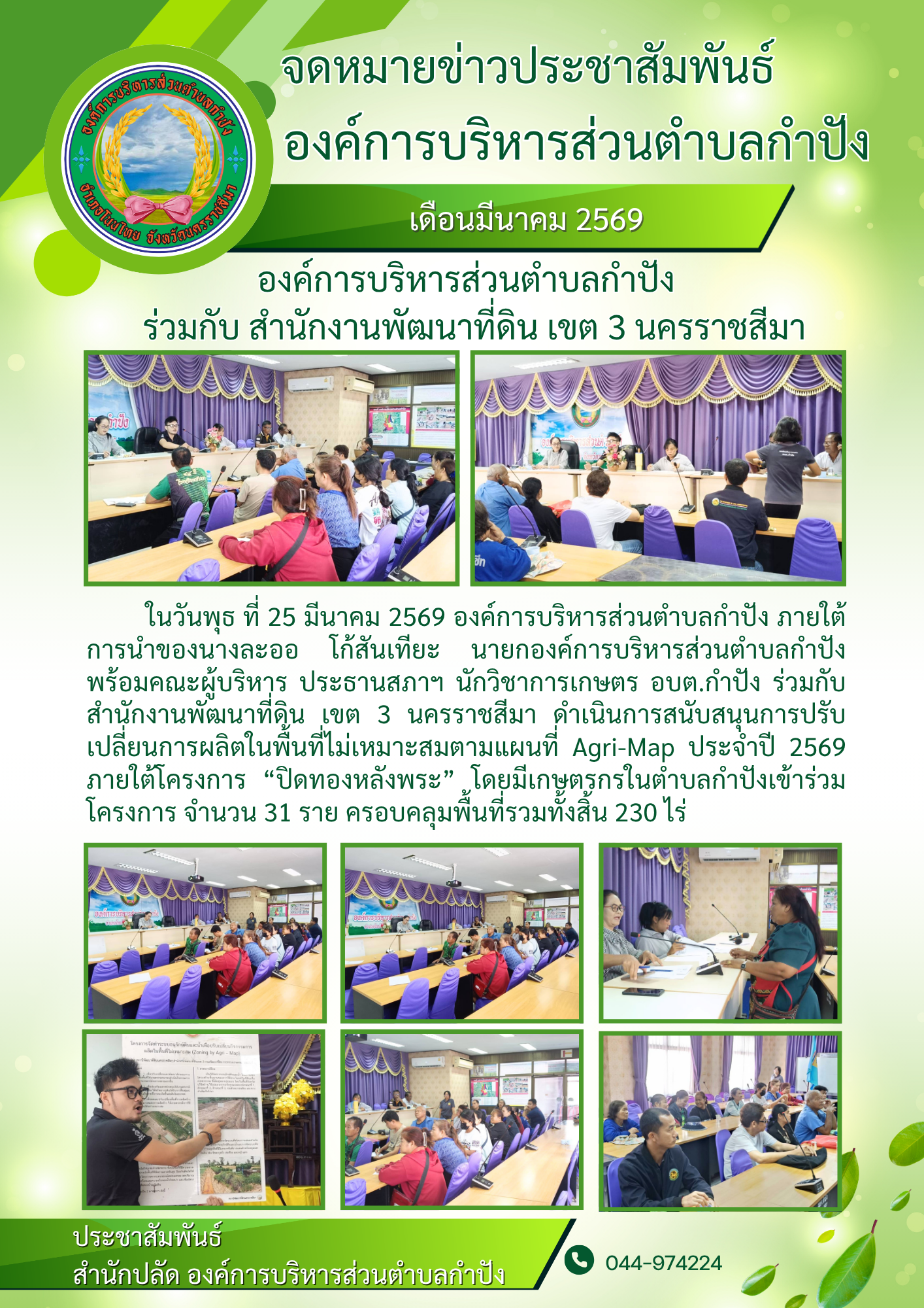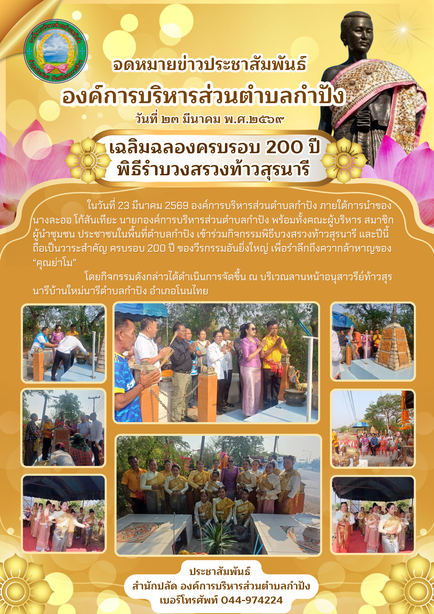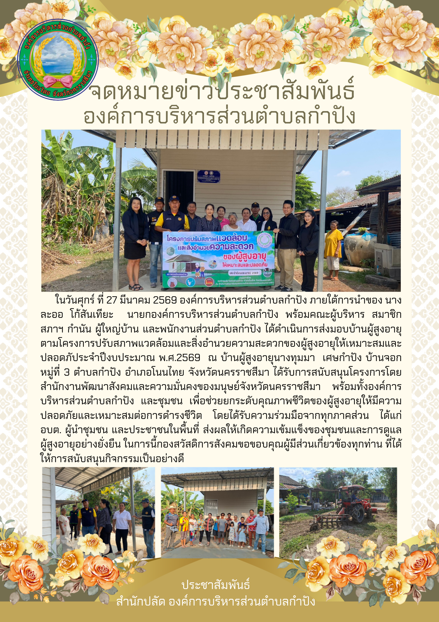 ในวันพฤหัสบดี ที่ 5 มีนาคม 2569 องค์การบริหารส่วนตำบลกำปัง ภายใต้การนำของ นางละออ โก้สันเทียะ นายกอ |