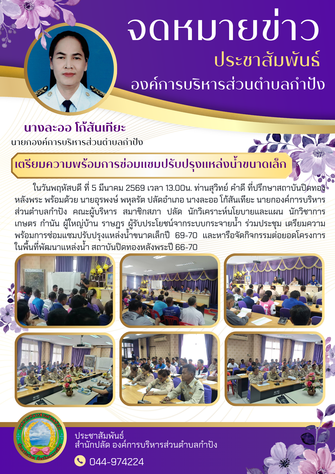 เตรียมความพร้อมการซ่อมแซมปรับปรุงแหล่งน้ำขนาดเล็กปี 69-70 และหารือจัดกิจกรรมต่อยอดโครงการในพื้นที่พั |