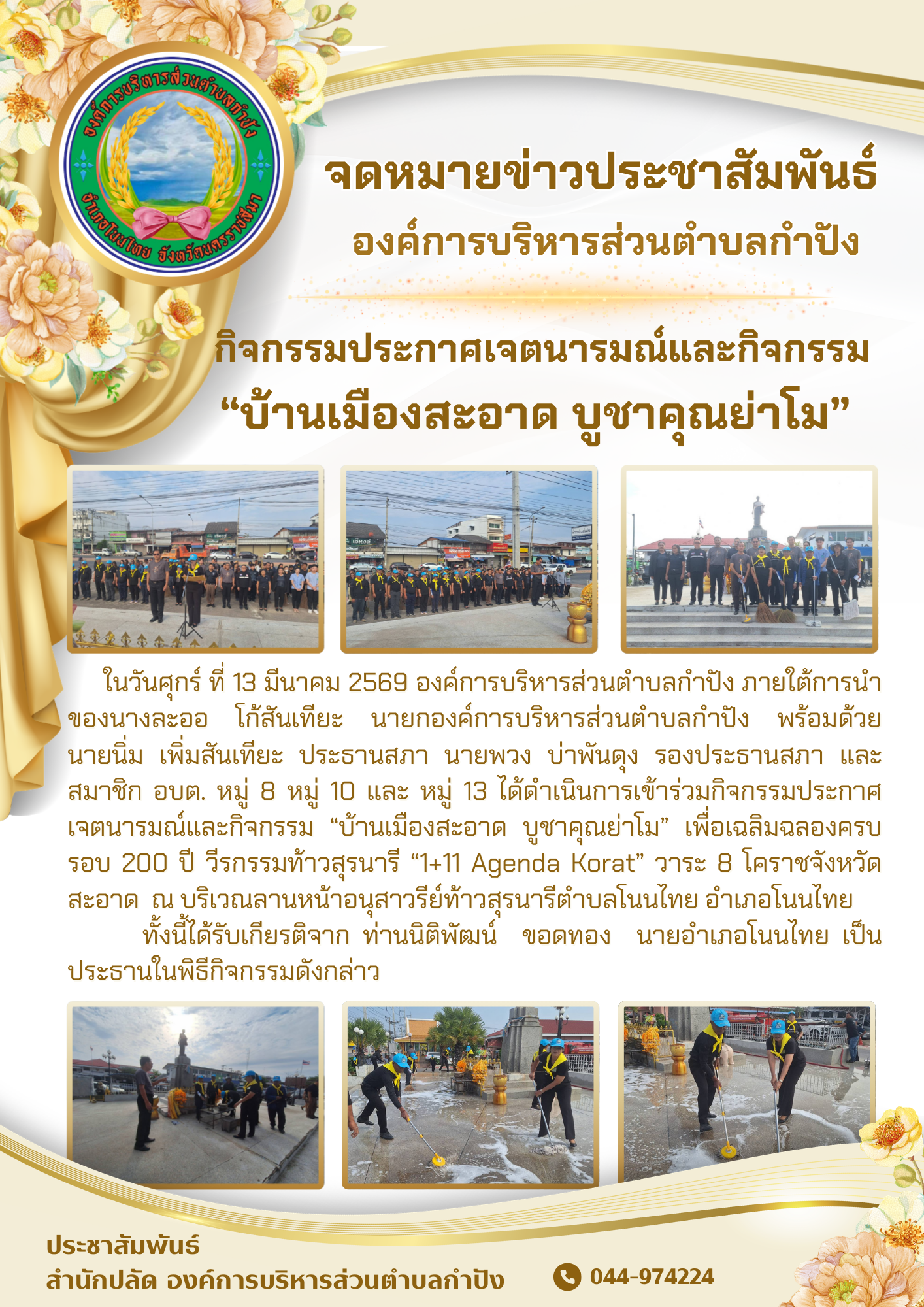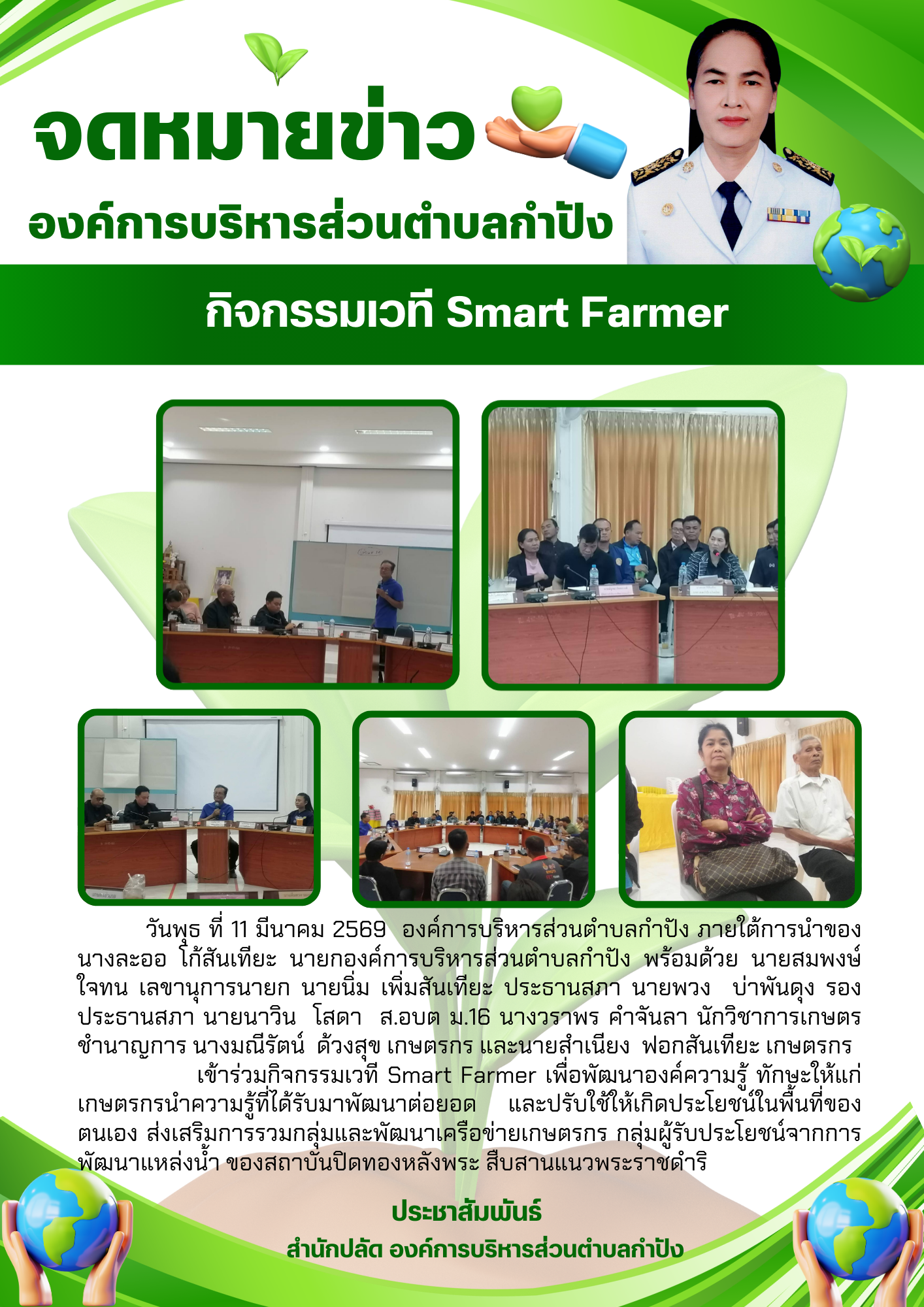 ในวันพฤหัสบดี ที่ 5 มีนาคม 2569 องค์การบริหารส่วนตำบลกำปัง ภายใต้การนำของ นางละออ โก้สันเทียะ นายกอ |