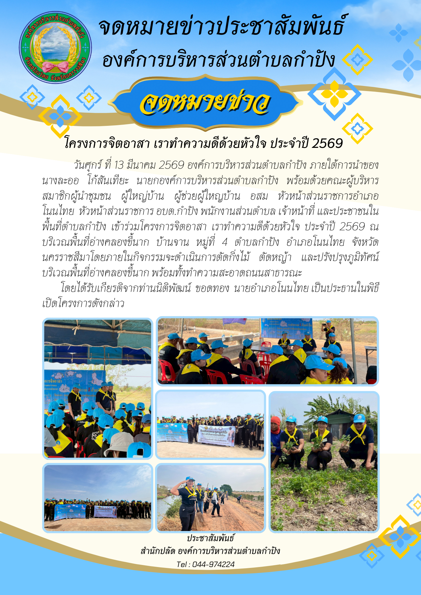 โครงการจิตอาสา เราทำความดีด้วยหัวใจ ประจำปี 2569 ณ บริเวณพื้นที่อ่างคลองขี้นาก บ้านจาน หมู่ที่ 4 ตำบ |