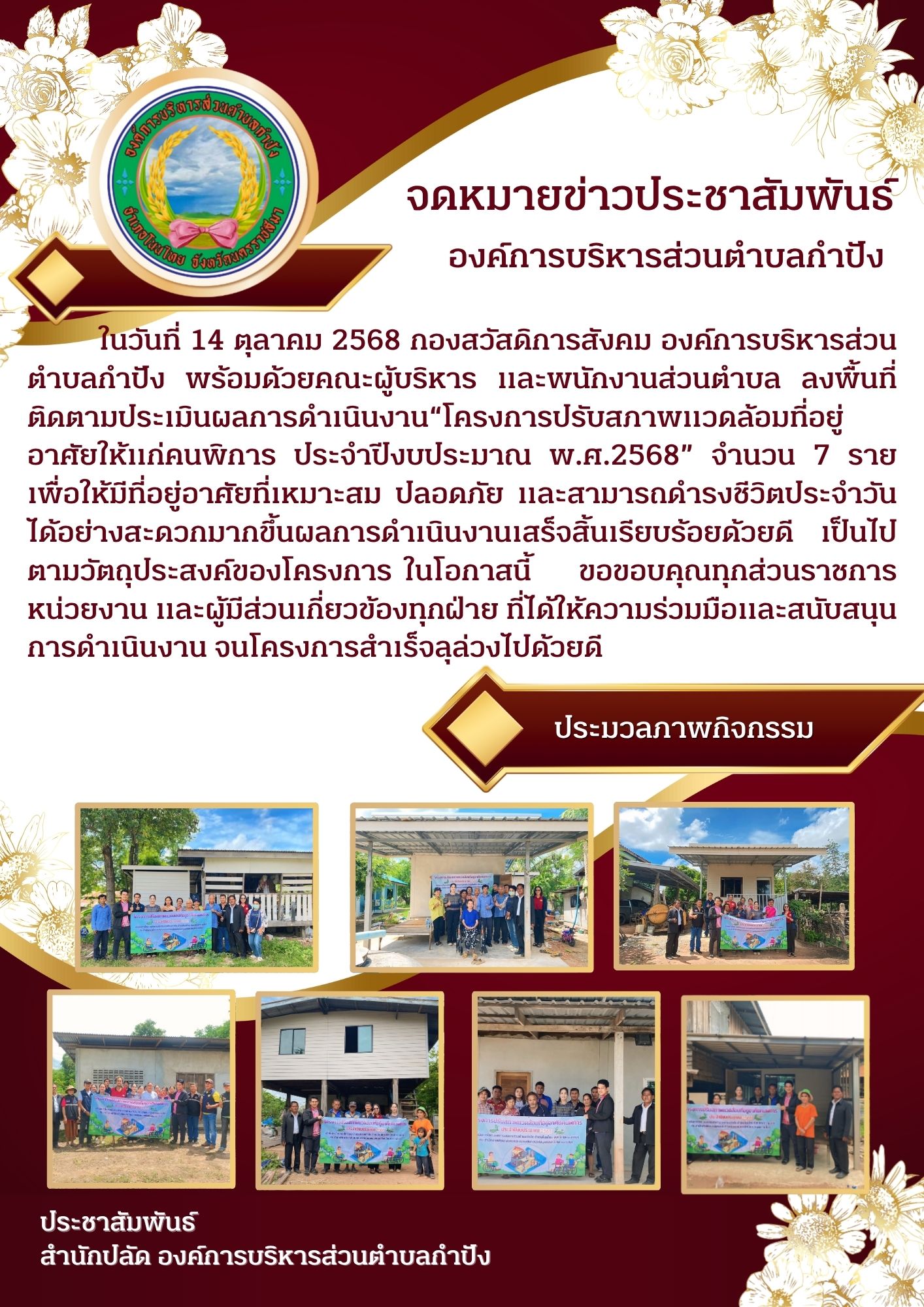 ได้ออกเยี่ยมบ้านคนพิการที่ได้รับการปรับสภาพที่อยู่อาศัยเพื่อให้เหมาะสมกับการดำรงชีวิตประจำวันและสร้ |