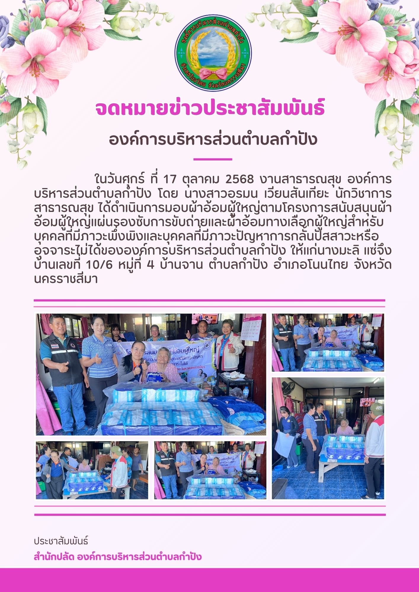 โครงการสนับสนุนผ้าอ้อมผู้ใหญ่แผ่นรองซับการขับถ่ายและผ้าอ้อมทางเลือกผู้ใหญ่สำหรับบุคคลที่มีภาวะพึ่งพิ |
