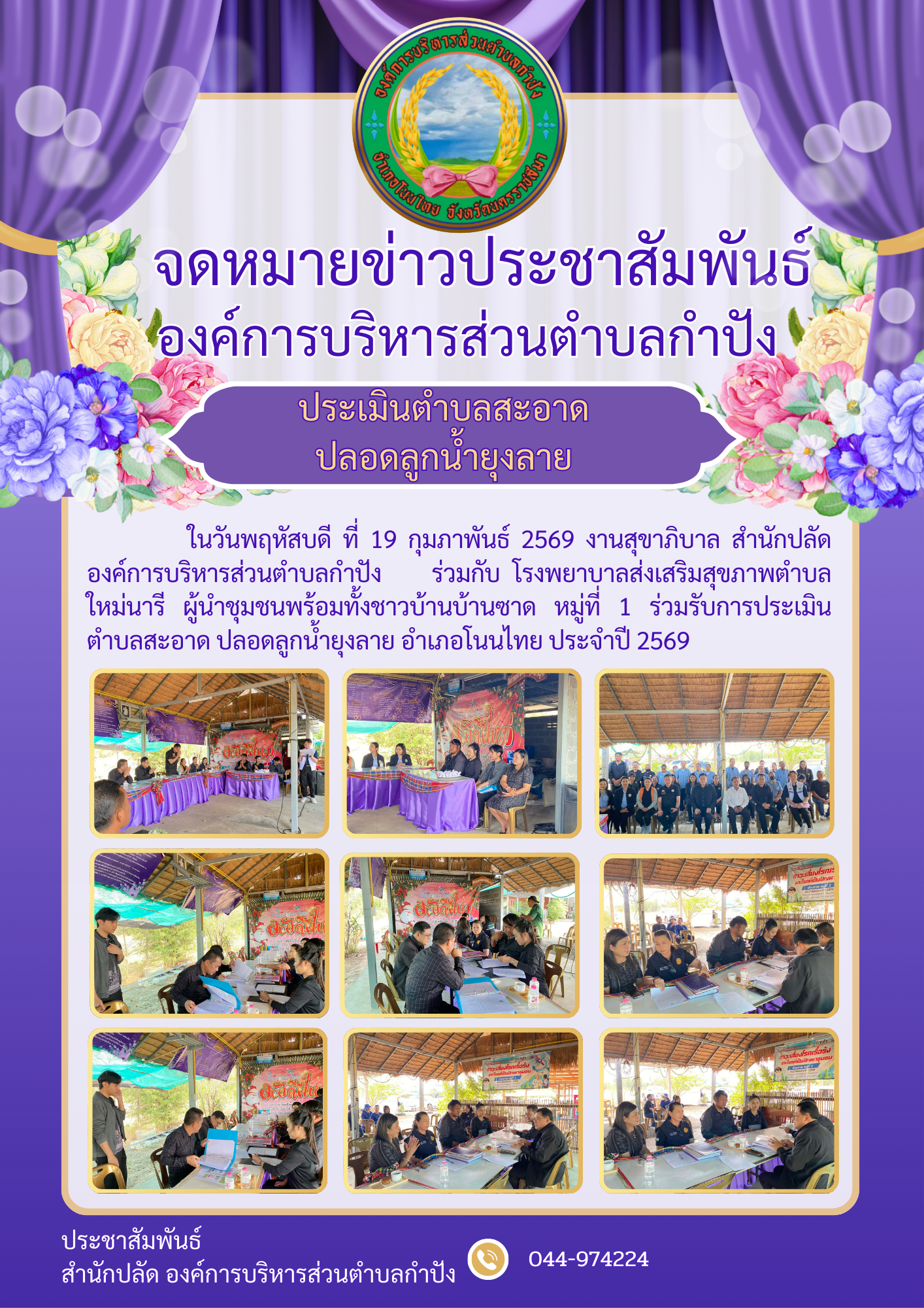 เข้าร่วมเป็นคณะกรรมการประเมินประกวดตำบลสะอาด ปลอดลูกน้ำยุงลาย อำเภอโนนไทย จังหวัดนครราชสีมา ณ วัดดอน |