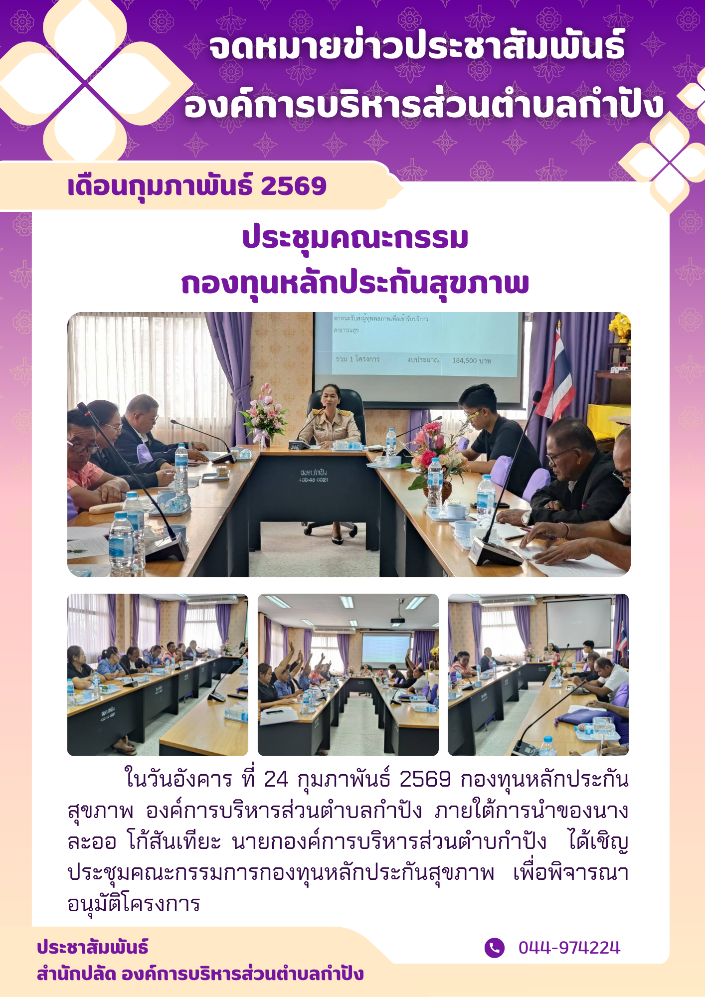 กองทุนหลักประกันสุขภาพ องค์การบริหารส่วนตำบลกำปัง ดำเนินการประชุมคณะกรรมการ เพื่อพิจารณาอนุมัติโครงก |