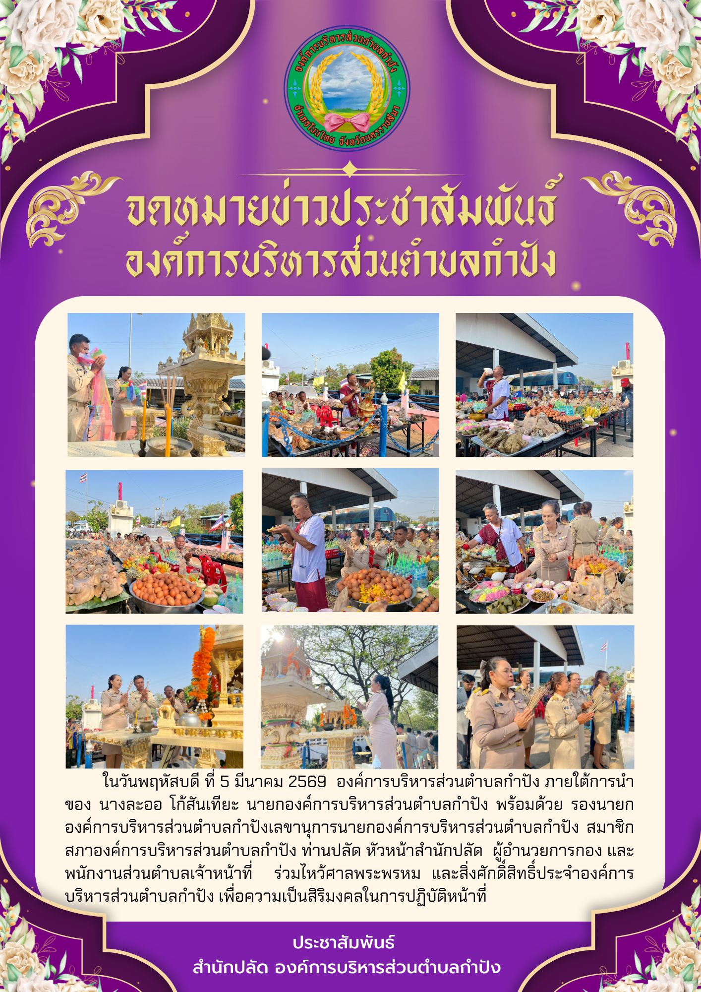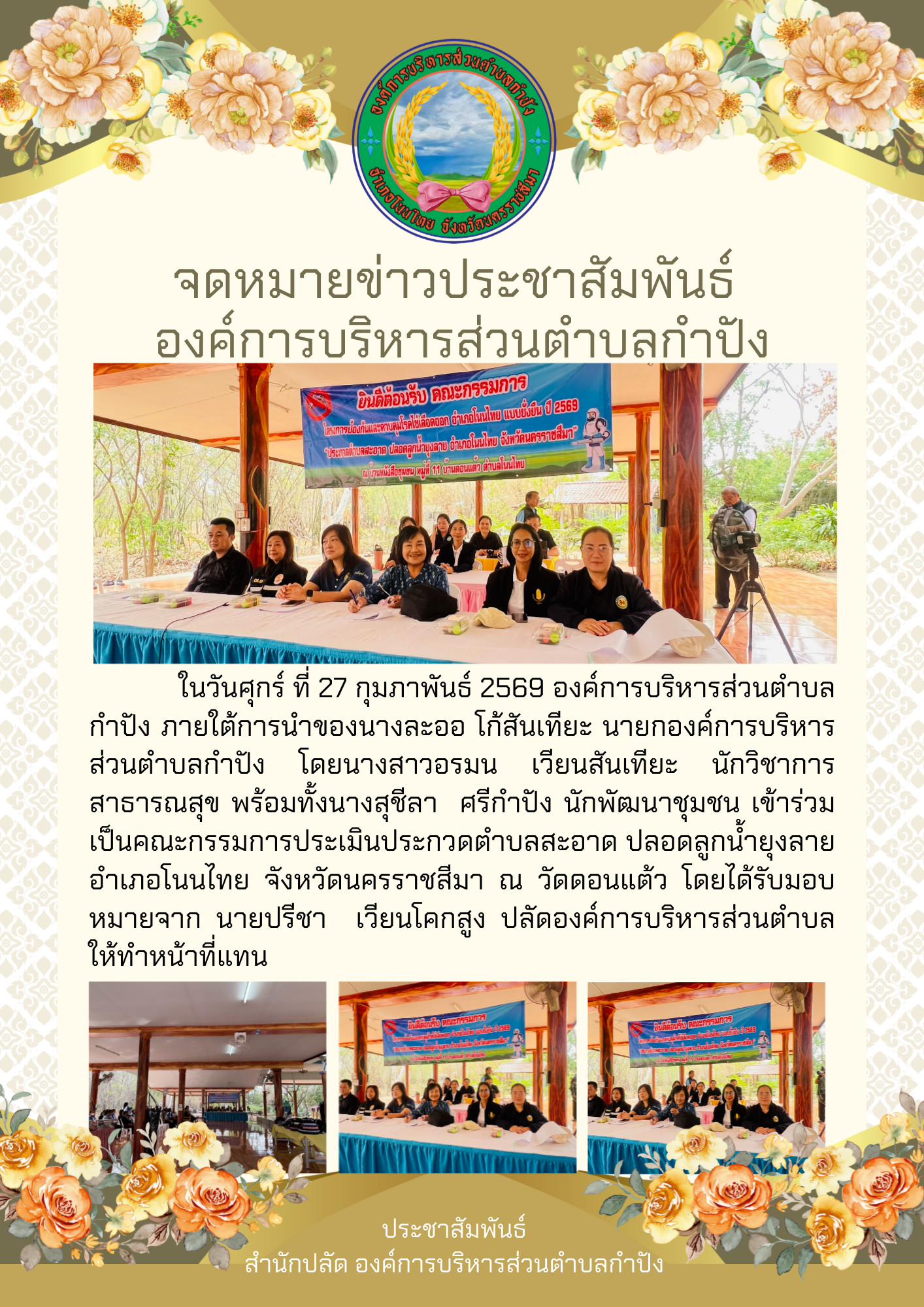 ในวันพฤหัสบดี ที่ 5 มีนาคม 2569 องค์การบริหารส่วนตำบลกำปัง ภายใต้การนำของ นางละออ โก้สันเทียะ นายกอ |
